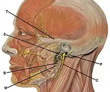 Facial nerve branches. Facial nerve should be examined for any potential damage when buccal mucosa is involved.