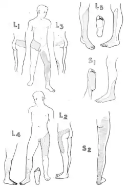 ![]() Dermatomes of the Upper and Lower Limbs (Modified, after Keegan, J. J., and Garrett, F. D.) | |