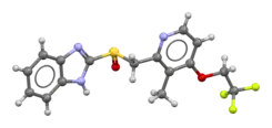 Dexlansoprazole, sold under the trade name Dexilant among others, is a medication which reduces stomach acid.[2] It is used to treat gastroesophageal reflux disease.[2] Effectiveness is similar to other proton pump inhibitors (PPIs).[3] It is taken by mouth.[2]
