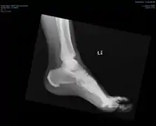 In some, the x-ray findings may correspond to symptoms of back stiffness with flexion/extension or with mild back pain.[2] Back pain or stiffness may be worse in the morning.[4] Rarely, large anterior cervical spine osteophytes may affect the esophagus or the larynx and cause pain, difficulty swallowing[5][6] or even dyspnea.[7] Similar calcification and ossification may be seen at peripheral entheseal sites, including the shoulder, iliac crest, ischial tuberosity, trochanters of the hip, tibial tuberosities, patellae, and bones of the hands and/or feet.[6]