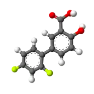 Diflunisal is a salicylic acid derivative with analgesic and anti-inflammatory activity.[1] It was developed by Merck Sharp & Dohme in 1971, as MK647, after showing promise in a research project studying more potent chemical analogs of aspirin.[2] It was first sold under the brand name Dolobid, marketed by Merck & Co., but generic versions are now widely available. It is classed as a nonsteroidal anti-inflammatory drug (NSAID) and is available in 250 mg and 500 mg tablets.
