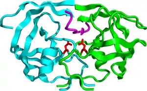HIV-1 protease is one of the best known aspartic proteases, and an attractive target for the treatment of AIDS.[9]