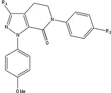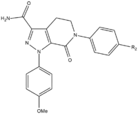 - Pinto, Donald J. P.; Orwat, Michael J.; Koch, Stephanie; Rossi, Karen A.; Alexander, Richard S.; Smallwood, Angela; Wong, Pancras C.; Rendina, Alan R.; Luettgen, Joseph M. (2007-11-01). "Discovery of 1-(4-Methoxyphenyl)-7-oxo-6-(4-(2-oxopiperidin-1-yl)phenyl)-4,5,6,7-tetrahydro- 1H-pyrazolo[3,4-c]pyridine-3-carboxamide (Apixaban, BMS-562247), a Highly Potent, Selective, Efficacious, and Orally Bioavailable Inhibitor of Blood Coagulation Factor Xa". Journal of Medicinal Chemistry. 50 (22): 5339–56. doi:10.1021/jm070245n. ISSN 0022-2623. PMID 17914785.