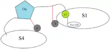 S2: The S2 pocket is a small and shallow pocket. It merges with the S4 pocket and has room for small amino acids. Tyr-99 seems to block access to this pocket, so this pocket is not as important as S1 and S4.[19]