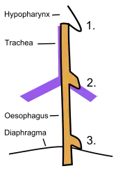 - Pharyngeal (Zenker's)- usually occurring in the elderly, through Killian's triangle above the cricopharyngeal muscle.