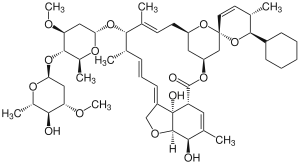 It is used for the treatment and control of internal parasitosis (gastrointestinal and pulmonary nematodes), ticks and mange (and other ectoparasites). Doramectin is a derivative of ivermectin. Similarly to other drugs of this family, it is produced by fermentation by selected strains of Streptomyces avermitilis.[2] Its spectrum includes: Haemonchus, Ostertagia, Trichostrongylus, Cooperia, and Oesophagostomum species and Dictyocaulus viviparus, Dermatobia hominis, Boophilus microplus, and Psoroptes bovis, among many other internal and external parasites. It is available as an injection and as a 5-mg/ml topical solution.