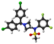 Drinabant (INN; AVE-1625) is a drug that acts as a selective CB1 receptor antagonist, which was under investigation varyingly by Sanofi-Aventis as a treatment for obesity, schizophrenia, Alzheimer's disease, Parkinson's disease, and nicotine dependence.[1][2][3] Though initially studied as a potential treatment for a variety of different medical conditions, Sanofi-Aventis eventually narrowed down the therapeutic indications of the compound to just appetite suppression. Drinabant reached phase IIb clinical trials for this purpose in the treatment of obesity but was shortly thereafter discontinued,[4] likely due to the observation of severe psychiatric side effects including anxiety, depression, and thoughts of suicide in patients treated with the now-withdrawn rimonabant, another CB1 antagonist that was also under development by Sanofi-Aventis.[5]