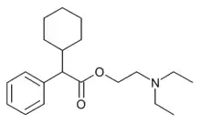 Drofenine is an antimuscarinic antispasmodic drug used for relaxing smooth muscle, thereby treating conditions, such as: dysmenorrhea, and pain in the gastrointestinal tract, biliary passages, and urogenital tract. Drofenine is assumed to work by increasing the levels of the protein TRPV3.[1][2][3]