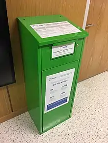 Alameda County was the first county in the United States to make the manufacturer pay for safe disposal of pharmaceutical waste. This ordinance required companies that manufacture drugs sold and distributed in Alameda County must operate and pay for a "Product Stewardship Program."[33] Examples of these programs include a drug kiosk or mail-back program and volunteer collectors, such as law enforcement and pharmacies.[34] Due to this program 8 other counties in California adopted similar programs, including San Mateo, Santa Barbara, Santa Clara, Marin, Los Angeles, Santa Cruz, Sonoma, Contra Costa, San Luis Obispo, and Tehama Counties.[35]