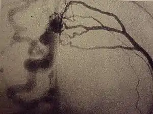 One approach used for treatment is embolization.[11] A six-vessel angiogram is employed to determine the vascular supply to the fistula.[5] Detachable coils, liquid embolic agents like NBCA, and onyx, or combinations of both are injected into the blood vessel to occlude the DAVF.[2] Preoperative embolization can also be used to supplement surgery.[12]