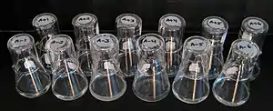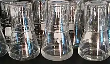 Lenski chose to carry out the experiment with the bacteria grown in a glucose-limited minimal medium called DM25,[14] which was initially developed by Bernard Davis for use in isolating auxotrophic mutants of E. coli using penicillin as a selective agent.[15][16] DM25 is supplemented with a low concentration of glucose.[14] Lenski chose this concentration to simplify analysis of the populations' evolution by reducing clonal interference, in which multiple versions of alleles are competing in an evolving population, while also reducing the possibility of the evolution of ecological interactions.[11] This concentration of glucose used supports a maximum population of 500 million cells of the ancestor in a 10 mL culture, though the maximum now varies among the evolved populations.[15] DM25 also contains a large amount of citrate (about 11 times the concentration of glucose), which was originally included by Davis because it improved the killing efficiency of penicillin during his experiments, though it is now known to aid in E. coli's acquisition of iron from the medium.[15][17]