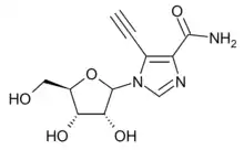 - De Clercq E, Cools M, Balzarini J, Snoeck R, Andrei G, Hosoya M, et al. (April 1991). "Antiviral activities of 5-ethynyl-1-beta-D-ribofuranosylimidazole-4- carboxamide and related compounds". Antimicrobial Agents and Chemotherapy. 35 (4): 679–84. doi:10.1128/aac.35.4.679. PMC 245078. PMID 2069373.