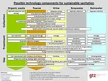 Possible technology components for sustainable sanitation, of which ecosan is a sub-set focussing on the reuse possibilities