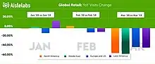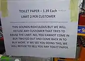 The pandemic has impacted the retail sector. Shopping centres around the world responded by reducing hours or closing down temporarily. As of 18 March 2020, the footfall to shopping centres fell by up to 30%, with significant impact in every continent.[70] Additionally, product demand exceeded supply for many consumables, resulting in empty retail shelves.[71][72] In Australia, the pandemic has provided a new opportunity for daigou shoppers to re-sell into the China market. "The virus crisis, while frightening, has a silver lining".[73][74]