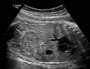 | Ectopic crossed fused kidney in a fetus approx. 34 weeks | |