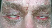 Ectropion is a medical condition in which the lower eyelid turns outwards. It is one of the notable aspects of newborns exhibiting congenital Harlequin-type ichthyosis, but ectropion can occur due to any weakening of tissue of the lower eyelid. The condition can be repaired surgically. Ectropion is also found in dogs as a genetic disorder in certain breeds.
