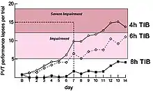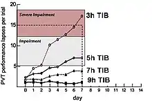 - Dinges, DF; Pack, F; Williams, K; Gillen, KA; Powell, JW; Ott, GE; Aptowicz, C; Pack, AI (1997). "Cumulative sleepiness, mood disturbance, and psychomotor vigilance performance decrements during a week of sleep restricted to 4-5 hours per night". Sleep. 20 (4): 267–77. PMID 9231952.