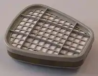 As of 2020, the commercially available particulate filter cartridges are disposable, and must be replaced when damaged (physically or chemically, torn or soiled with something that will damage the filter, such as many fluids), contaminated (the outside has caught dangerous particulates; for instance, infectious particles), or clogged due to accumulated particles, so that breathing resistance is too high.[2] Particulate filters may be simple disks or other shapes of flat filter material,[15] which are lightweight,[16] or they may be pancake-style[2] hollow discs with a smaller central plastic connecting tube on one side.[17] Particulate filters may also be enclosed in hard-cased disposable cartridges. The disposable cases protect the filter against splashes and can be wiped clean, which may be important in some applications.[18][2]