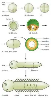 • Invagination – infolding of cell sheet into embryo, forming the mouth, anus, and archenteron.[9][10]