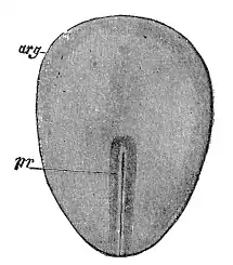 Surface view of embryo of a rabbit. (After Kölliker.) arg. Embryonic disc. pr. Primitive streak.