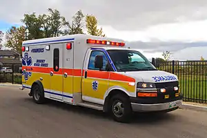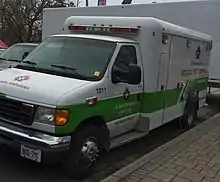In addition to regular EMS, many jurisdictions also operate non-emergency patient transport services. In many jurisdictions, there are also companies who specialize in non-emergency patient transfers. Such companies have their own vehicles, which are similar to ambulances and carry some similar patient care equipment. These services can relieve the workload on public EMS through the elimination of some, or most, of the non-emergency transfer volume,[27] and some provide service to the public that is of the highest standard. In many cases, such services are small private businesses, using second-hand ambulances which have been retired from public EMS service, while others use vehicles expressly built for their purposes.[28] There has, however, been some controversy, in some jurisdictions, with respect to the operating procedures of some (but not all) of these services. In some cases, the vehicles are often made to look as much like EMS ambulances as possible,[29] even retaining emergency lights and sirens (which they are forbidden by law to use), and incorporating the word "paramedic" (this term is not protected in Canada yet), variations on "EMS" (in some cases, "event medical services") or spelling variations of "ambulance", such as "ambu-lans", or using the Star of Life logo on their vehicle markings. These services are not generally licensed, or required to meet any recognized standard. These services generally attempt to recruit staff who meet provincial EMS qualification standards, but are under no legal obligation to do so. Such services are not covered by provincial health insurance, operate on a fee-for-service basis, and are not considered to be a legitimate part of mainstream EMS.[30]
