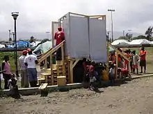 Emergency sanitation is the management and technical processes required to provide sanitation in emergency situations. Emergency sanitation is required during humanitarian relief operations for refugees, people affected by natural disasters and internally displaced persons.[1] There are three phases of emergency response: Immediate, short term and long term.[1] In the immediate phase, the focus is on managing open defecation, and toilet technologies might include very basic latrines, pit latrines, bucket toilets, container-based toilets, chemical toilets. The short term phase might also involve technologies such as urine-diverting dry toilets, septic tanks, decentralized wastewater systems. Providing handwashing facilities and management of fecal sludge are also part of emergency sanitation.