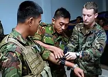 Emergency tourniquets are cuff-like devices designed to stop severe traumatic bleeding before or during transport to a care facility. They are wrapped around the limb, proximal to the site of trauma, and tightened until all blood vessels underneath are occluded. The design and construction of emergency tourniquets allows quick application by first aid responders or the injured persons themselves.[1] Correct use of tourniquet devices has been shown to save lives under austere conditions with comparatively low risk of injury. In field trials, prompt application of emergency tourniquets before the patient goes into shock are associated with higher survival rates than any other scenario where tourniquets were used later or not at all.[2][3]