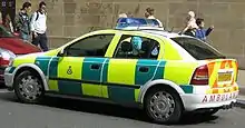 - Grille lights - Flashing lights fitted on, into or behind the grille of the emergency vehicle, creating forward-facing flashing effects, designed to be seen in the rear view mirror of moving traffic in front of the vehicle. These can be fitted to both overt and covert emergency vehicles, by simply changing whether they are mounted internally or externally, or by varying the lens colour (so that they may look like fog lights on a covert vehicle)