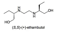 - Ethambutol: Whereas the (S,S)-(+)-enantiomer is used to treat tuberculosis, the (R,R)-(–)-ethambutol causes blindness.[11]