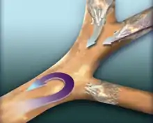The one-way endobronchial valve is typically implanted such that on exhalation air is able to flow through the valve and out of the lung compartment that is fed by that airway, but on inhalation, the valve closes and blocks air from entering that lung compartment. Thus, an implanted endobronchial valve typically helps a lung compartment to empty itself of air. This has been shown to be beneficial in the treatment of emphysema, where lungs lose their elasticity and thus cannot contract sufficiently to exhale air, leading to air trapping and hyperinflation. When one or more diseased portions of an emphysematous lung are made to deflate and collapse, other healthier portions of the lung have more room in the chest cavity to inhale and exhale, pressure is removed from the diaphragm, and even the heart may function better as the hyperinflated lung becomes smaller.[1] The amount of residual volume reduction achieved, correlates with the effects on FEV1, quality of life and exercise capacity.[2] Endobronchial valves have also been shown to be beneficial in treatment of persistent air leaks in the lungs. It has also been theorized that endobronchial valves may be useful for treatment of tuberculosis and its complications. Endobronchial valves may be the first successful medical device treatment of emphysema, a disease that affects billions of people worldwide and has no known cure, being managed traditionally by lung transplantation and/or lung volume reduction surgery (though some people do not meet the eligibility requirements for one or both of these invasive procedures).[3][4]