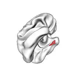 ![]() Medial surface of right hemisphere. Entorhinal cortex visible at near bottom. | |