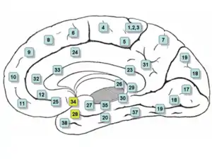 - Brodmann area 34 is known as the "area entorhinalis dorsalis"