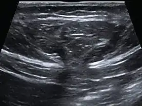 | Abdominal ultrasound of a midline epigastric hernia. | |