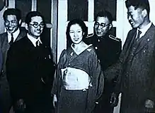 Newspaper photo taken shortly after the arrest of Sada Abe (center) in Tokyo on May 20, 1936