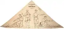 The original version was designed by Friedrich von Esmarch, professor of surgery at the University of Kiel, Germany, and is generally used in battlefield medicine. Esmarch himself had been Surgeon General to the German army during the Franco-German War. It consisted of a three-sided piece of linen or cotton, the base measuring 4 feet and the sides 2 feet 10 inches. It could be used folded or open, and applied in thirty-two different ways. An improved form was devised by Bernhard von Langenbeck later on.