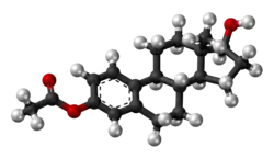 Estradiol acetate is a synthetic estrane steroid and the C3 acetate ester of estradiol.[3] It is also known as estradiol 3-acetate or as estra-1,3,5(10)-triene-3,17β-diol 3-acetate.[3] Another common ester of estradiol in use for oral administration is estradiol valerate, which is a C17β ester of estradiol.[8][23]