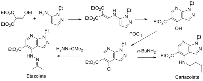 Cartazolate and Etazolate synthesis: E.R. SQUIBB & SONS, INC., NEW YORK, N.Y., US. DE 2123318