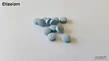 Etizolam is a drug of potential misuse. Cases of etizolam dependence have been documented in the medical literature.[53] However, conflicting reports from the World Health Organization, made public in 1991, dispute the misuse claims.[54] Since 1991, cases of etizolam misuse and addiction have substantially increased,[55] due to varying levels of accessibility and cultural popularity.[56] Pills being sold as Xanax or other benzodiazepines that are illicitly manufactured may often contain etizolam rather than their listed ingredient [57]