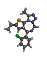 Etizolam (marketed under many brand names) is a thienodiazepine derivative[7] which is a benzodiazepine analog.[8] The etizolam molecule differs from a benzodiazepine in that the benzene ring has been replaced by a thiophene ring and triazole ring has been fused, making the drug a thienotriazolodiazepine.[9][10]
