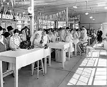 In the Deep South, women's associations played an important role in rallying support for eugenic legal reform. Eugenicists recognized the political and social influence of southern clubwomen in their communities, and used them to help implement eugenics across the region.[31] Between 1915 and 1920, federated women's clubs in every state of the Deep South had a critical role in establishing public eugenic institutions that were segregated by sex.[32] For example, the Legislative Committee of the Florida State Federation of Women's Clubs successfully lobbied to institute a eugenic institution for the mentally retarded that was segregated by sex.[33] Their aim was to separate mentally retarded men and women in order to prevent them from breeding more "feebleminded" individuals.