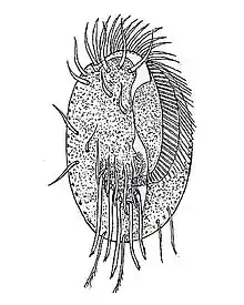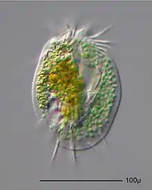 Euplotes is a genus of ciliates in the subclass Euplotia. Species are widely distributed in marine and freshwater environments, as well as soil and moss. Most members of the genus are free-living, but two species have been recorded as commensal organisms in the digestive tracts of sea urchins.[1][2]