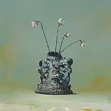 The album cover is titled Pittor Pickgown in Khatheinstersper.[31] It depicts an abstract flower pot with four flowers inside. The lower section of the pot features sculptures of two faceless humanoid figures, one male and one female. Frank Falisi from Tiny Mix Tapes wrote that, while the scroll presented in the album art of Stage 1 was a reminder that "the only thing behind our bodies is us," the album cover for Stage 2 is what is presented when the scroll becomes unfurled, adding that "the only things behind our bodies are pretty flowers from a rotten rock."[29]
