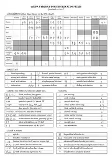 - M Duckworth, G Allen, W Hardcastle & M Ball (1990) "Extensions to the International Phonetic Alphabet for the transcription of atypical speech", Clinical Linguistics and Phonetics 4: 273–280.