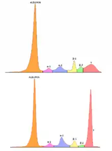 6. O'Connell TX, Horita TJ, Kasravi B (January 2005). "Understanding and interpreting serum protein electrophoresis". Am Fam Physician. 71 (1): 105–12. PMID 15663032.