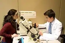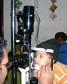 An eye examination is a series of tests performed to assess vision and ability to focus on and discern objects. It also includes other tests and examinations pertaining to the eyes. Eye examinations are primarily performed by an optometrist, ophthalmologist, orthoptist, or an optician. Health care professionals often recommend that all people should have periodic and thorough eye examinations as part of routine primary care, especially since many eye diseases are asymptomatic.