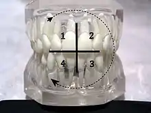 | This is set by going clockwise from the dentist's view. | |