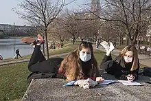 The use of face masks (or coverings in some cases) has been recommended by health professionals and political authorities to reduce the risk of contagion. About 95% of the world's population live in countries that recommend or mandate the use of masks in public during the pandemic.[1]