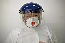 A face shield, an item of personal protective equipment (PPE), aims to protect the wearer's entire face (or part of it) from hazards such as flying objects and road debris, chemical splashes (in laboratories or in industry), or potentially infectious materials (in medical and laboratory environments).