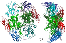 A units have a mass of about 83 kDa, 731 amino acid residues, 5 protein domains (listed from the N-terminal to C-terminal, residue numbers are in brackets):[1]