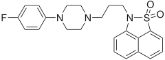 Fananserin (RP-62203) is a drug which acts as a potent antagonist at both the 5HT2A receptor,[1] and the Dopamine D4 receptor,[2] but without blocking other dopamine receptors such as D2.[3] It has sedative[4] and antipsychotic effects, and has been researched for the treatment of schizophrenia,[5] although efficacy was less than expected and results were disappointing.[6]